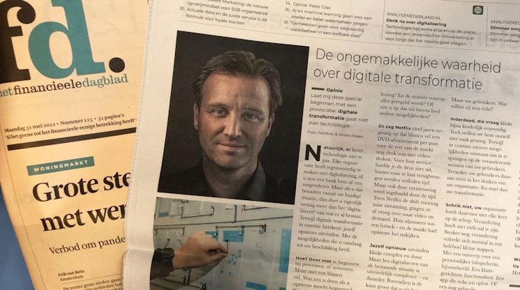 Laat mij deze special beginnen met een provocatie: digitale transformatie gaat niet over technologie. Natuurlijk, er komt technologie aan te pas. Elke organisatie heeft tegenwoordig te maken met digitalisering, of u nou een bank bent of een zorgverlener. Maar als u dat benadert vanuit uw huidige situatie, dan doet u eigenlijk weinig meer dan het ‘digitaliseren’ van wat er al bestaat. Terwijl digitale transformatie in essentie betekent: jezelf opnieuw uitvinden. Met de mogelijkheden die u vandaag tot uw beschikking heeft.